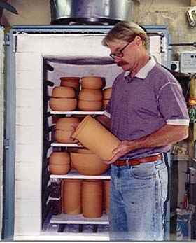 Peter inspecting a new 14 cuft LPG gas kiln |